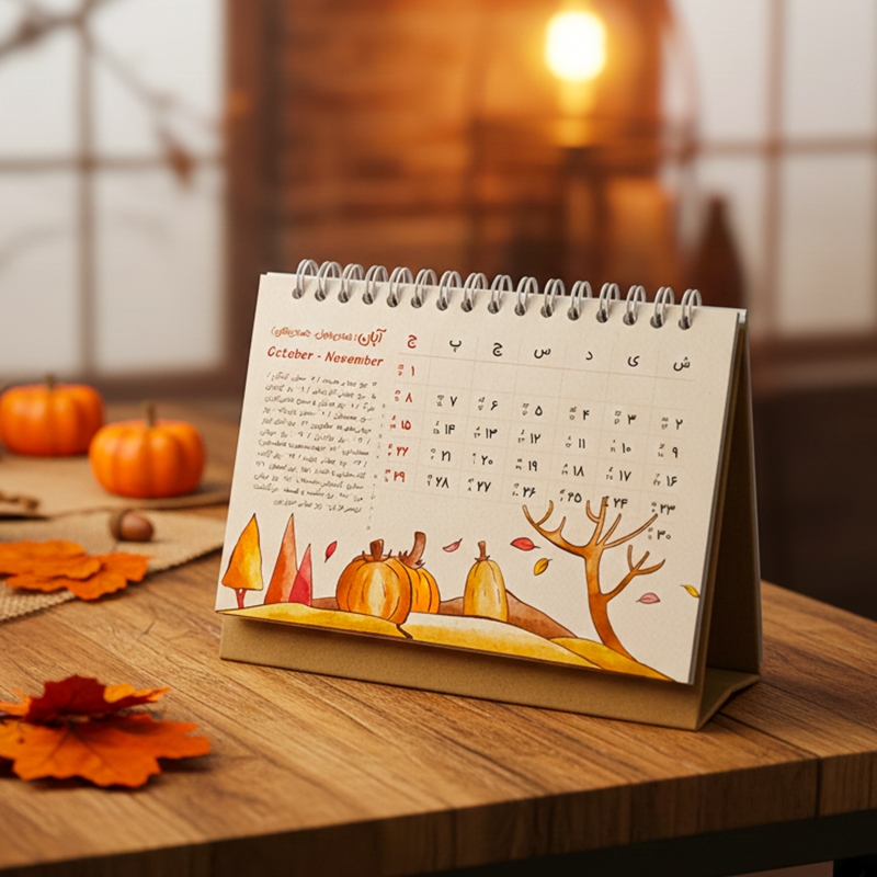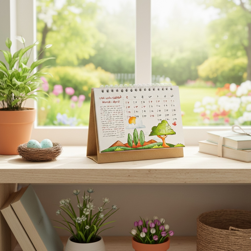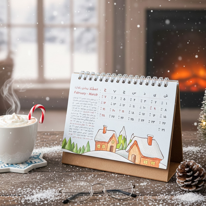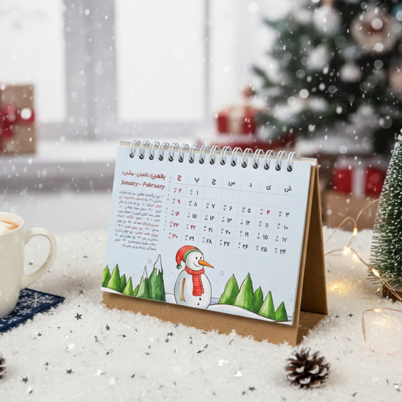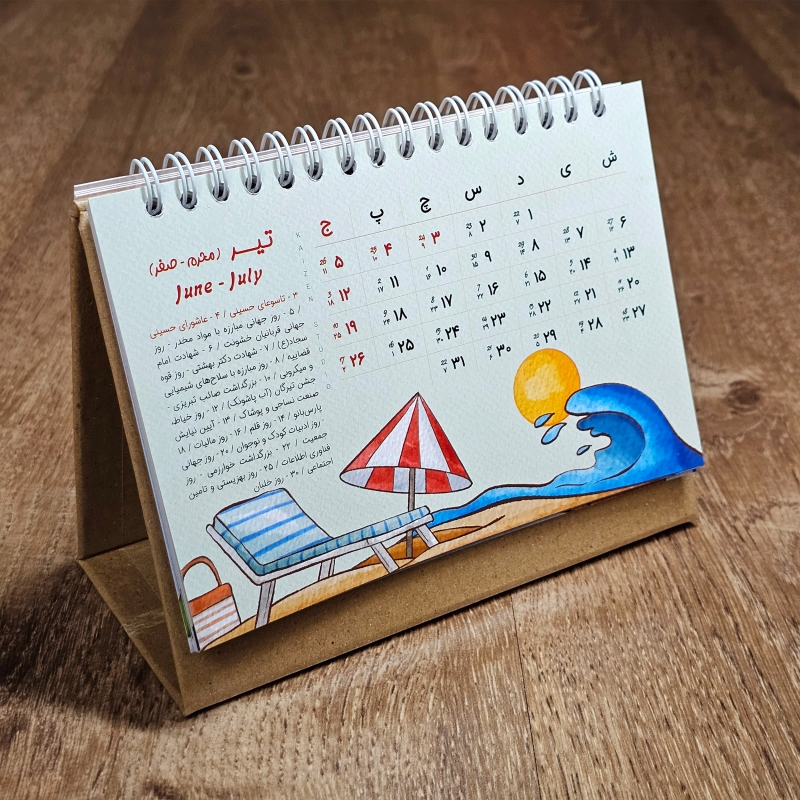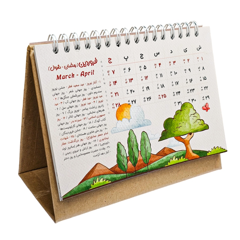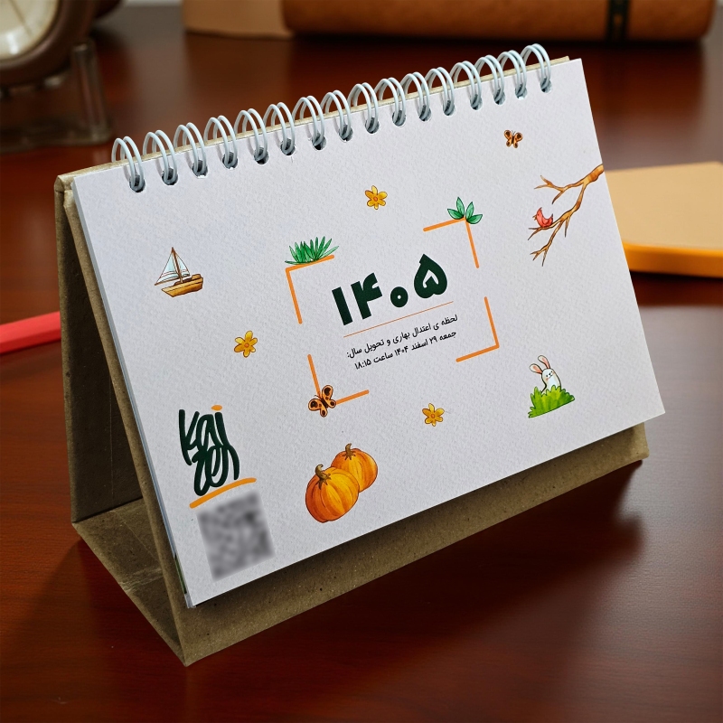 تقویم رومیزی جزء گزینه هایی است که روی هر میز کاری پیدا می شود و همه افراد به آن احتیاج دارند. تقویم رومیزی استودیو طراحی کایزن با طراحی بی نظیر و با تصویرسازی های منحصر بفرد زیبایی دو چندان را برای میز کار شما به همراه می آورد و در تمام طول سال 1405 همراه شما خواهد بود. این تقویم دارای همه تعطیلات رسمی و مناسبت های مهم ایران باستان، فرهنگی و هنری، مذهبی به تفکیک ماه می باشد.